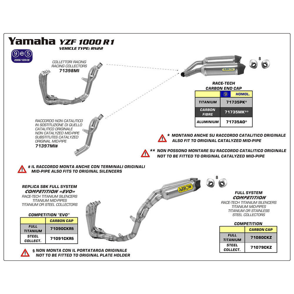 - Note - For correct fitment, this ARROW Silencer Set will connect to the ARROW specific Link Pipe #71397MI that connects to O.E. Header / Collector unit.